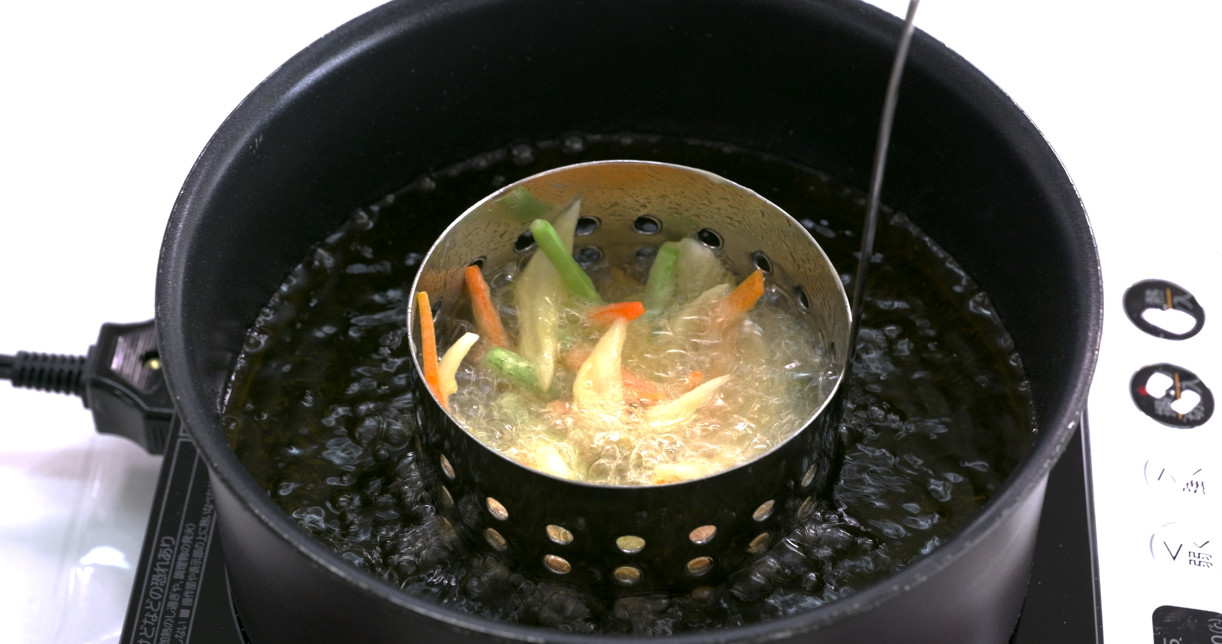 ④鍋に油を入れて170度~180度に熱する。